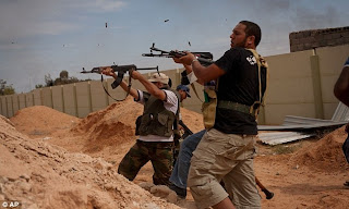 Ready for battle: Rebel fighters prepare to take firing positions to attack pro-Gaddafi forces